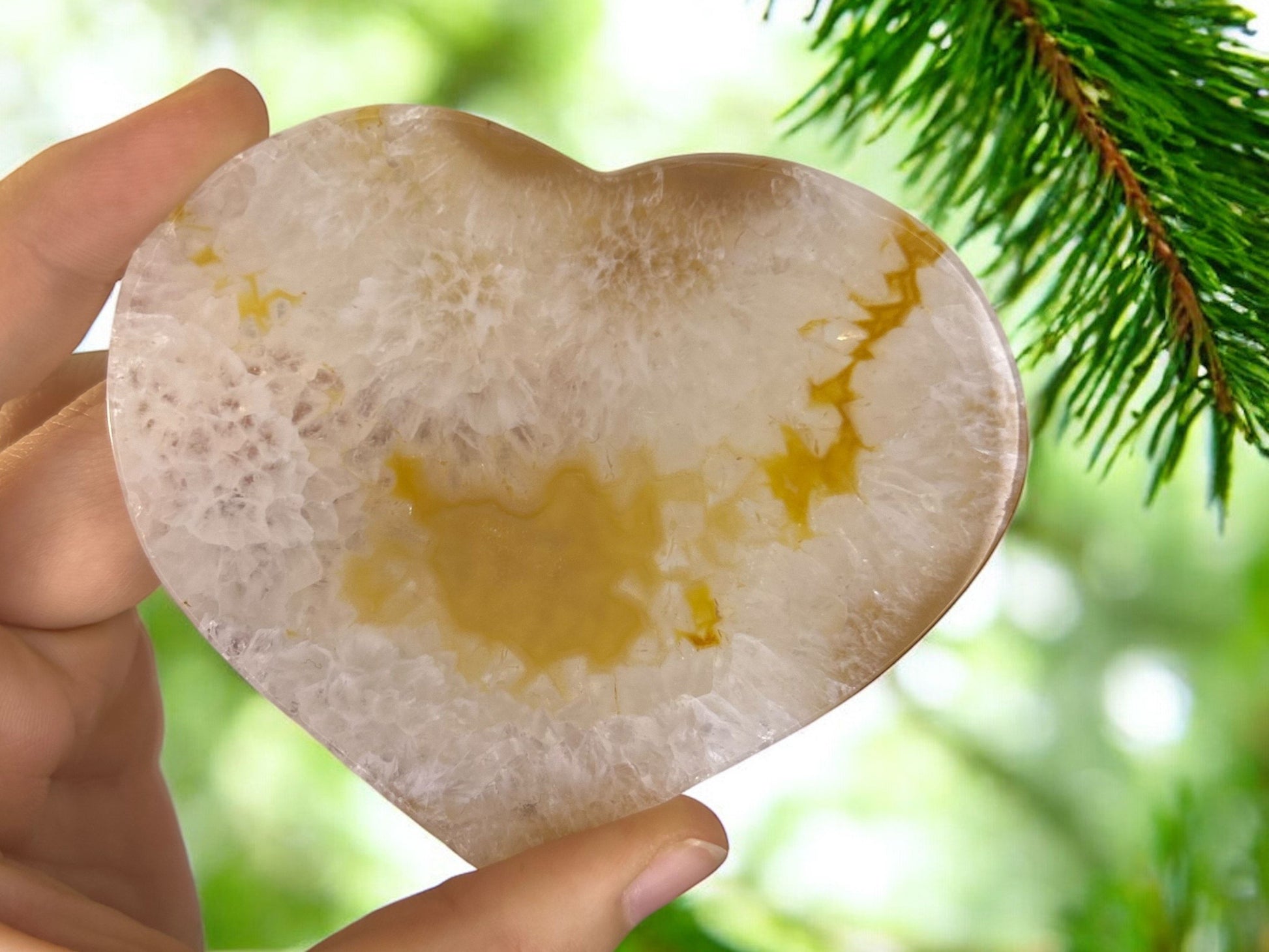 Achat ist ein Stein der Stabilität und des Schutzes. Er wird oft verwendet, um das energetische Gleichgewicht zu fördern und negative Energien abzuwehren. Der Achat stärkt die Verbindung zur Erde und hilft dabei, sich zu zentrieren, was zu einem tiefen Gefühl der Ruhe und Geborgenheit führt. Als Herzform verstärkt der Achat die emotionalen Eigenschaften des Steins und fördert Selbstliebe, Mitgefühl und Harmonie in zwischenmenschlichen Beziehungen.