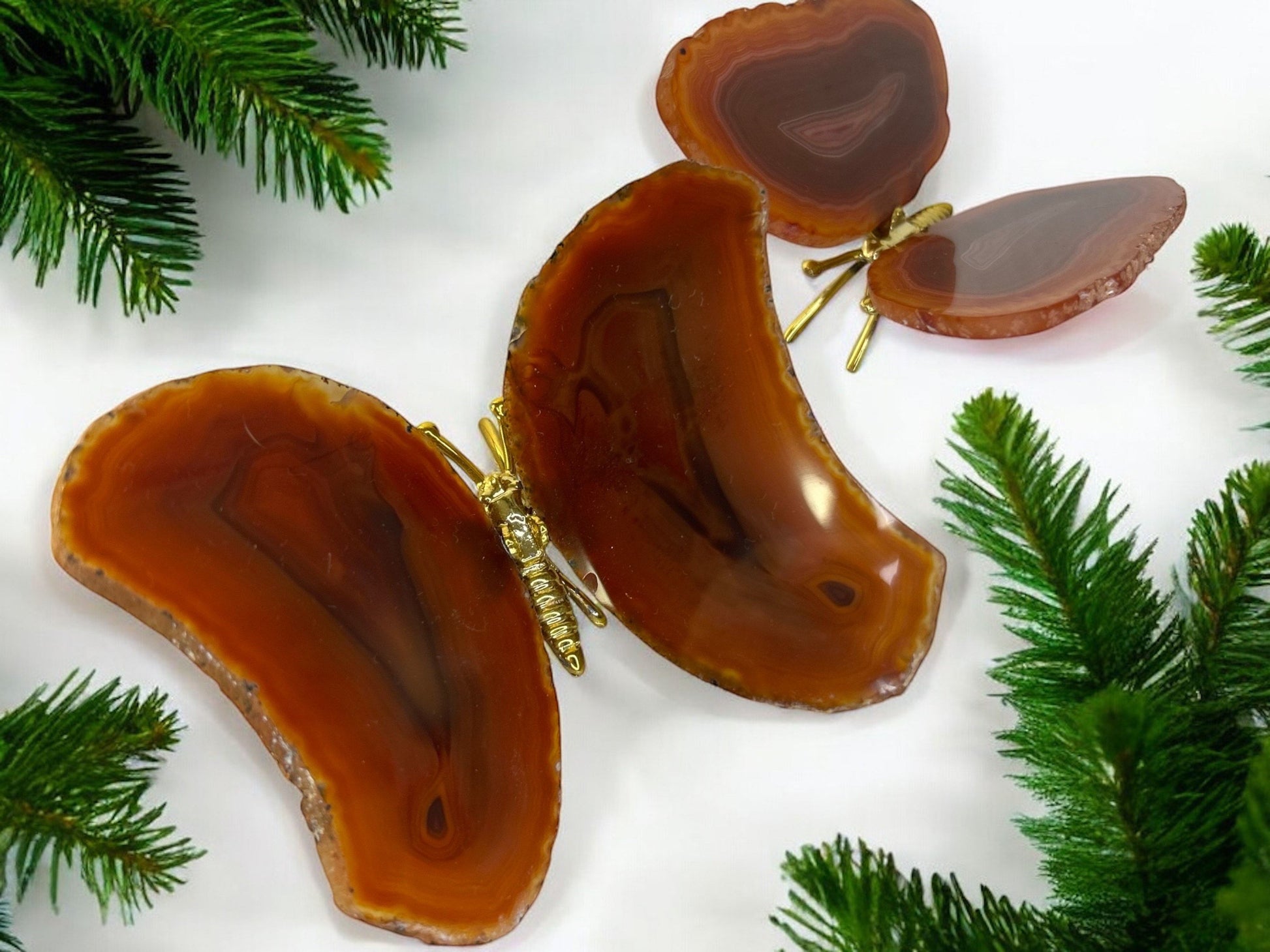 Dieser Schmetterling stellt nicht nur eine ästhetische Bereicherung dar, sondern symbolisiert auch Transformation und die Schönheit des Lebens. Die einzigartige Kombination aus Achat macht ihn zu einem besonderen Hingucker, der sowohl als dekoratives Element als auch als spirituelles Symbol dient.