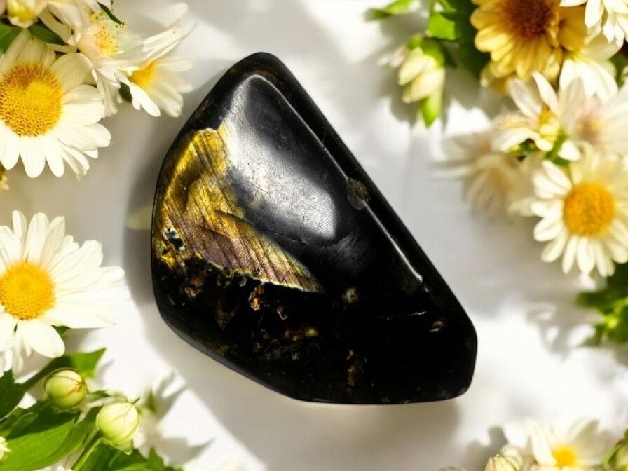 Dieser kraftvolle Spektrolith (ca. 374 g, 7,5 x 7,5 cm) fasziniert mit seinem mystischen goldenen Schimmer, der je nach Lichteinfall in warmen, schimmernden Nuancen erstrahlt. Als eine seltene und besonders intensive Form des Labradorits gilt Spektrolith als Stein der Magie, Intuition und Transformation.