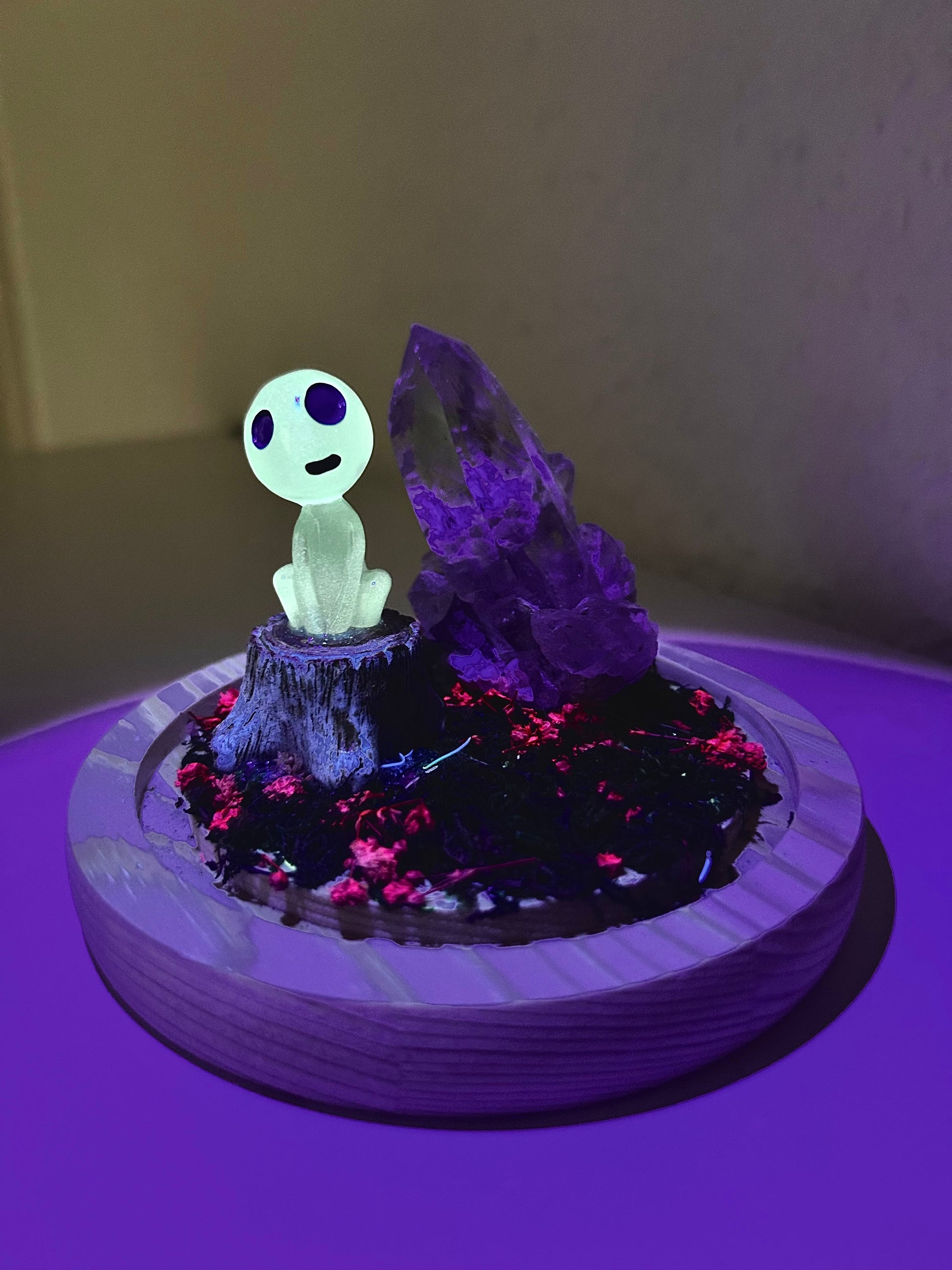 Doch das wahre Wunder zeigt sich im Dunkeln: Unter UV-Licht beginnt der Geist zu strahlen – ein geheimnisvolles Glühen wie aus einer anderen Dimension.