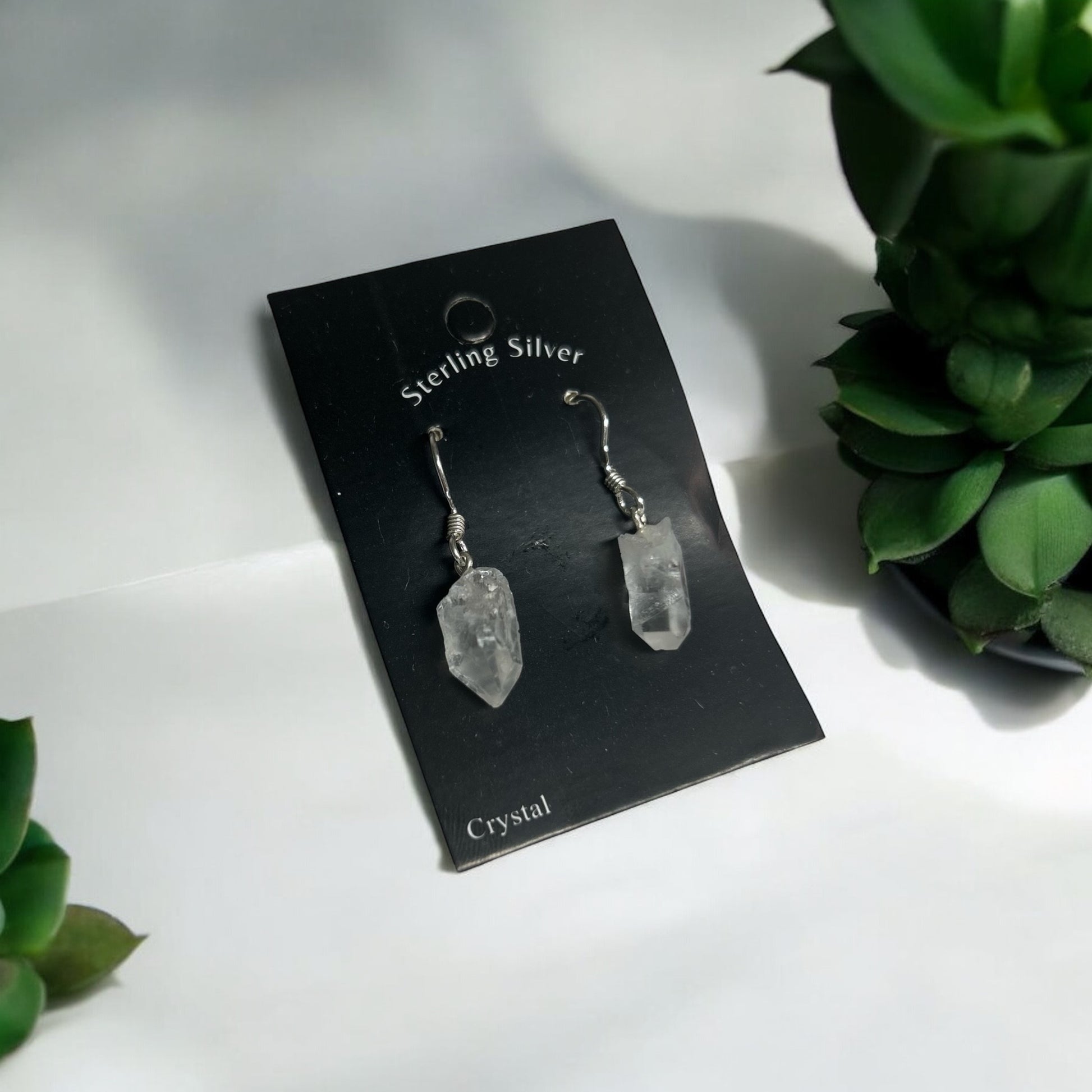 Diese Ohrringe bestehen aus naturbelassenen, klaren Bergkristallspitzen und hochwertigen Haken aus echtem Sterling Silber. Jeder Kristall ist einzigartig in Form und Schimmer – perfekt für alle, die Natürlichkeit, Eleganz und spirituelle Energie lieben.