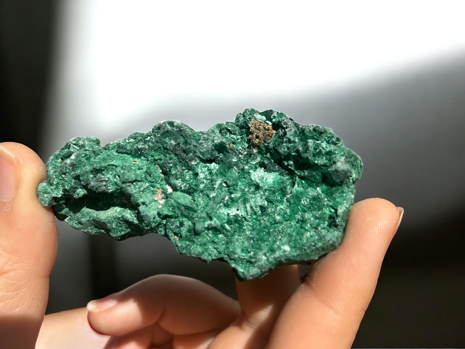 Entdecke die faszinierende Schönheit des faserigen Malachits – ein einzigartiges Naturwunder aus dem Herzen des Kongos. Diese hochwertigen Stücke bestechen durch ihren intensiven, tiefgrünen Farbton und einen edlen, seidigen Glanz, der besonders im Licht spektakulär zur Geltung kommt.