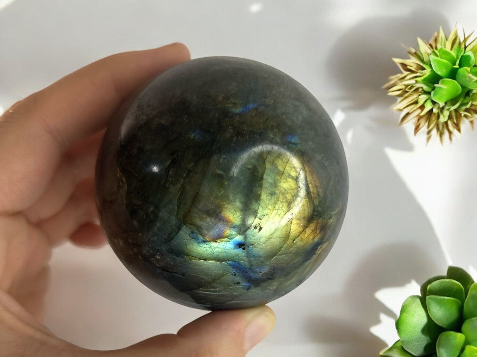 Die Sphere wurde mit höchster Präzision aus hochwertigem Labradorit aus Madagaskar geschliffen und poliert, sodass sie ihre natürliche Schönheit und energetische Kraft optimal entfalten kann. Die flimmernden Lichtreflexionen auf der Oberfläche machen diese Sphere zu einem wahren Blickfang, der jeden Raum verzaubert und gleichzeitig eine kraftvolle Präsenz schafft.