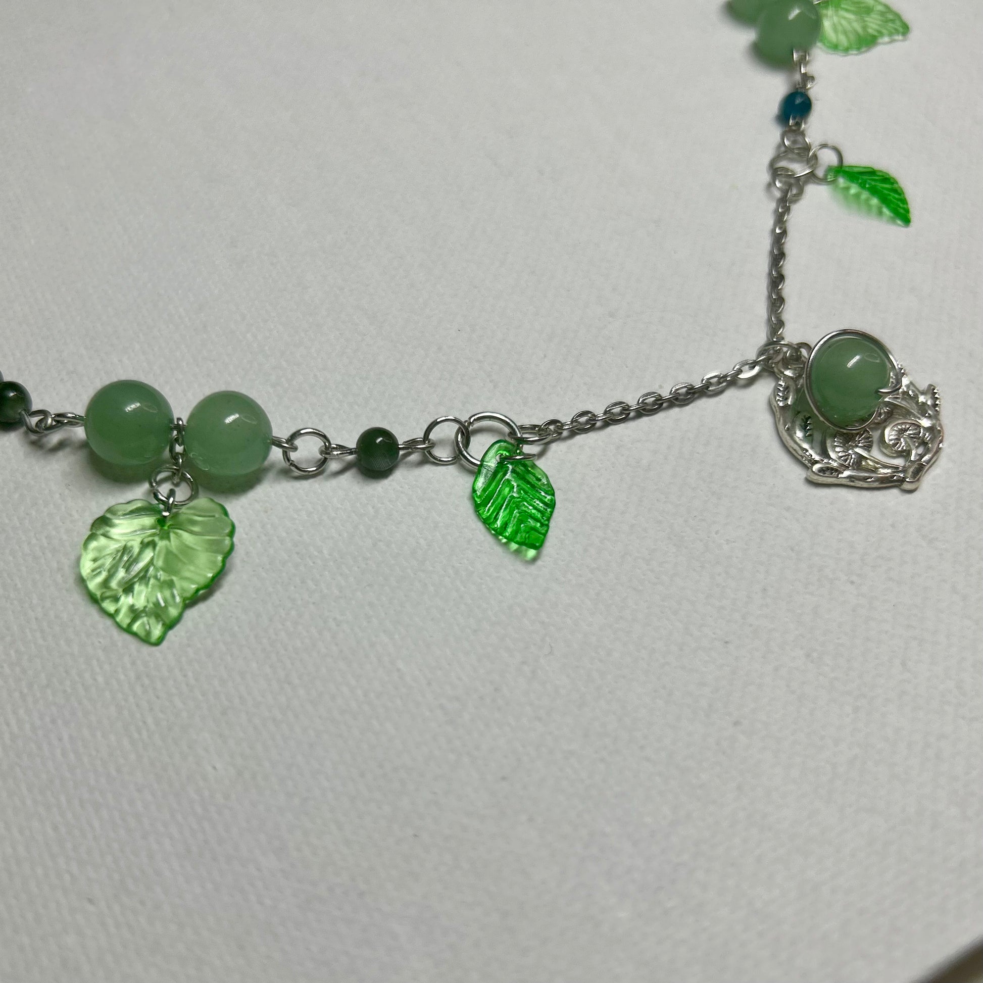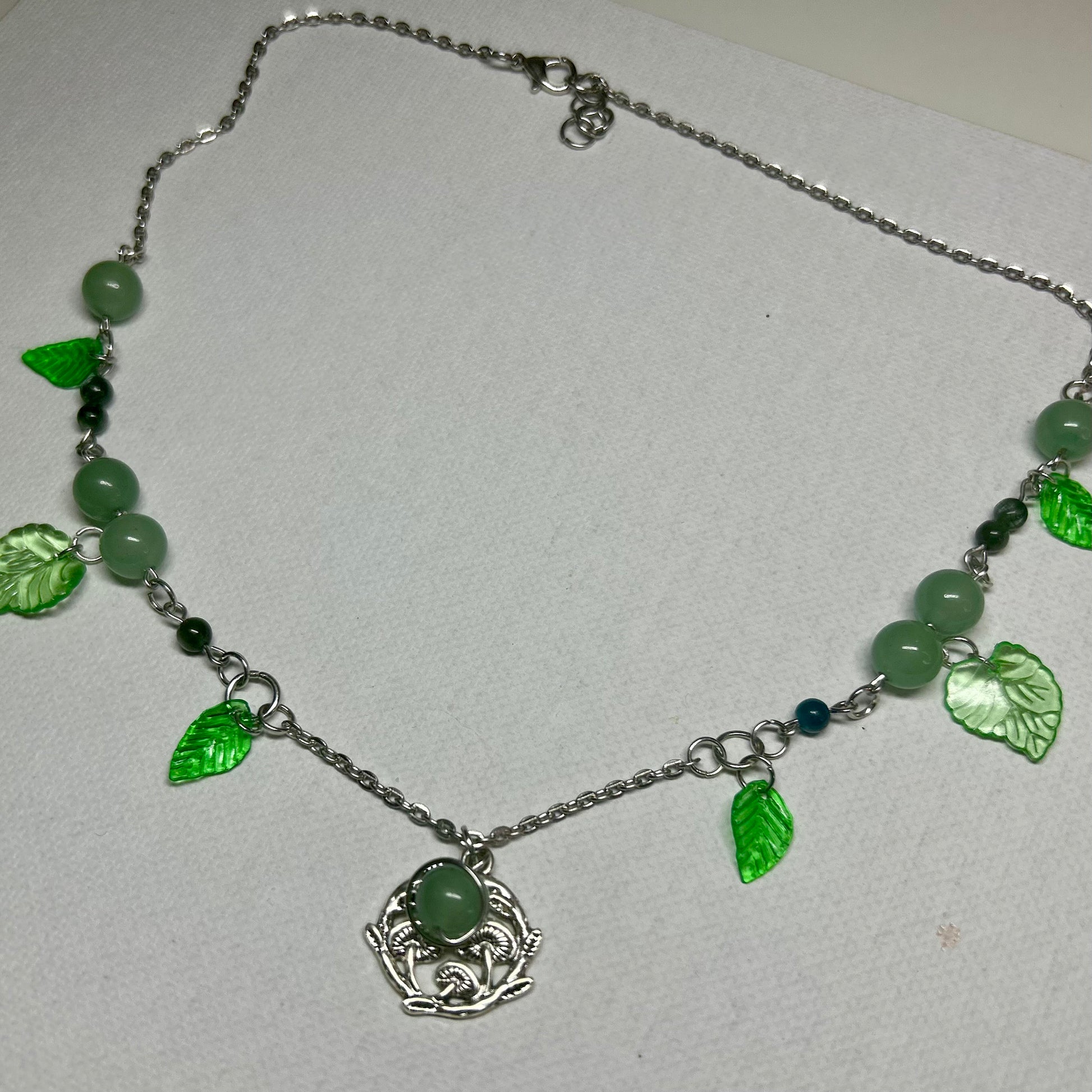 Diese Kette bringt die Magie des Waldes an deinen Hals: Aventurin steht für Glück, Mut und Entspannung. Die grünen Blätter und der kunstvolle Anhänger erinnern an verwunschene Wälder und die Heilkraft der Natur. Perfekt für Naturliebhaberinnen, Freigeister und alle, die ihre Verbundenheit zur Erde zeigen möchten.