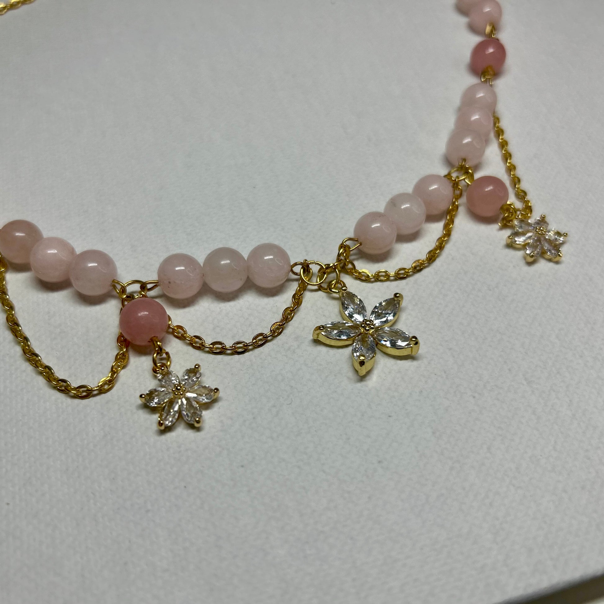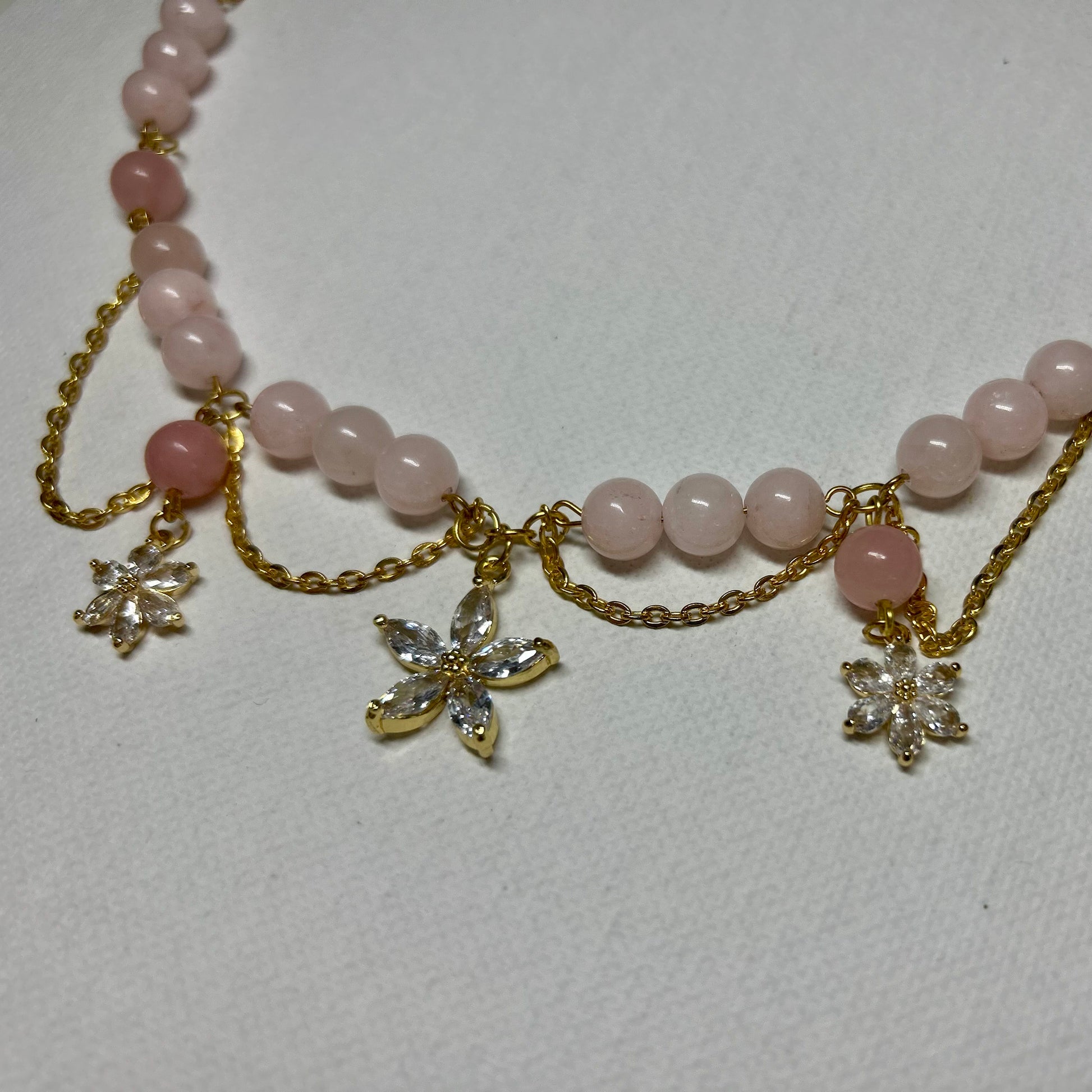Diese liebevoll gestaltete Kette vereint die sanfte Energie des Morganits mit funkelnden Blüten-Charms. Sie unterstützt Selbstliebe, Mitgefühl und sanfte Stärke – perfekt für Tage, an denen du dich selbst feiern oder beschenken möchtest. Die goldfarbenen Akzente und die edle Verarbeitung machen sie zum femininen Lieblingsstück für Alltag und besondere Anlässe.