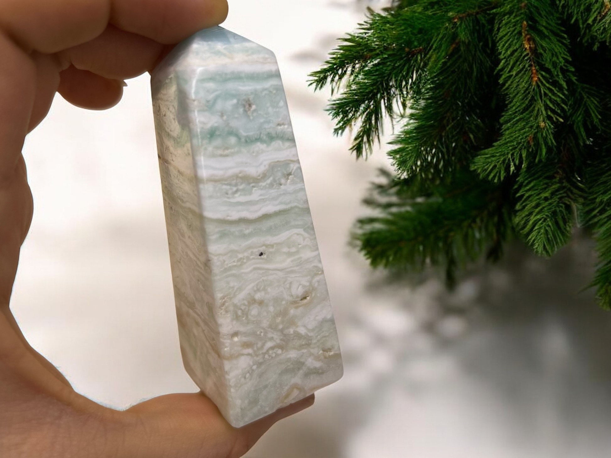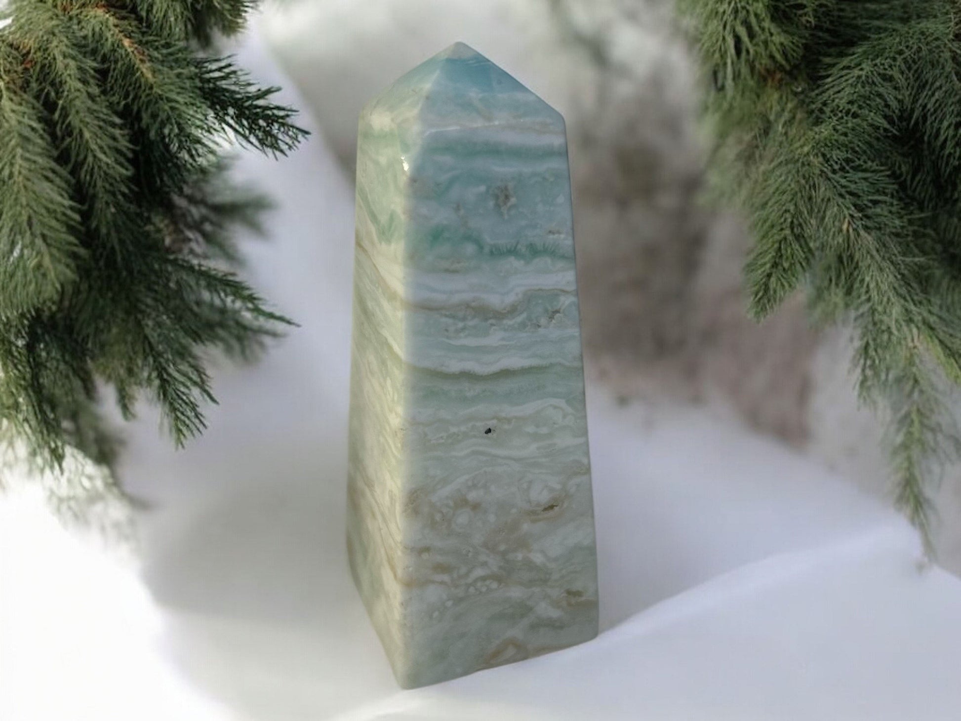 Diese wunderschönen Karibische Calcit Türme sind ein wahres Meisterwerk der Natur. Der Stein besticht durch seine zarten, pastellfarbenen Töne in Blau, Weiß und Beige, die an die Ruhe und Harmonie der Karibik erinnern. Der Karibische Calcit wird sorgfältig in die Form eines Turms geschliffen, der aufgrund seiner Höhe und Stabilität sowohl als spirituelles Werkzeug als auch als dekoratives Element hervorragend zur Geltung kommt.
