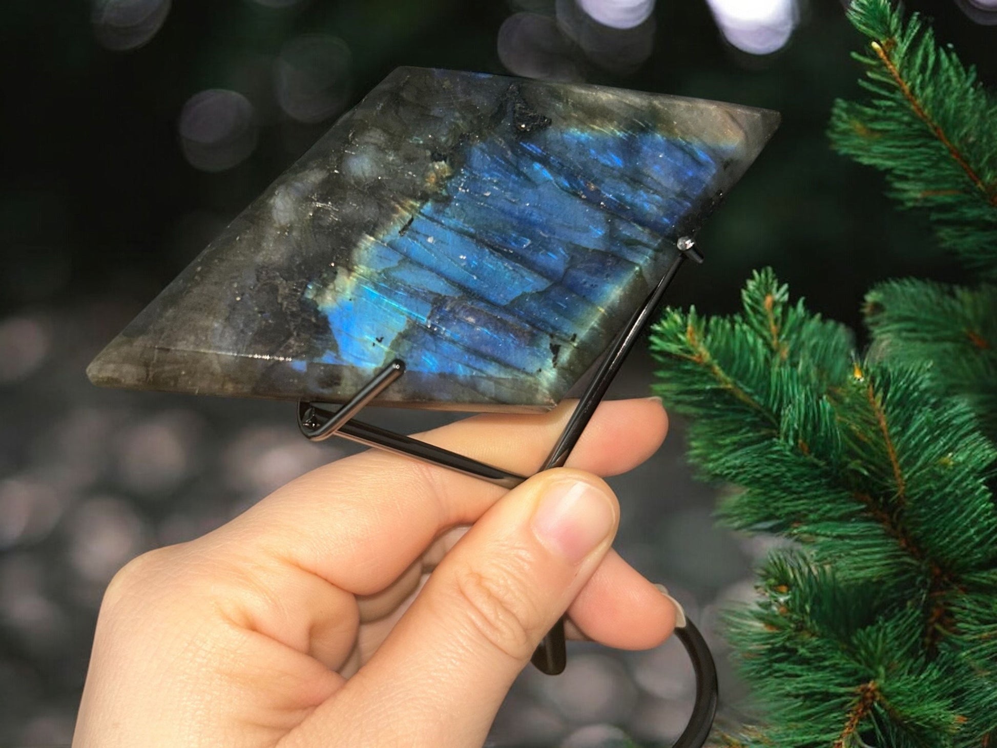 Der Labradorit ist bekannt für seine schützenden und transformierenden Energien. Er soll dabei unterstützen, die eigene Intuition zu stärken und hilfen, Stress und negative Energien abzuleiten. Ideal für Meditation, Feng Shui oder einfach als dekoratives Element mit positiver Wirkung.