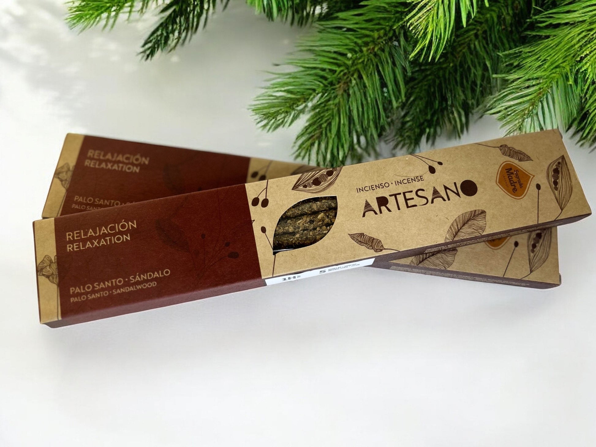 Erlebe den harmonisierenden und reinigenden Duft unserer Palo Santo-Weihrauch-Sandelholz Räucherstäbchen. Diese einzigartige Mischung vereint die spirituelle Kraft des heiligen Holzes "Palo Santo" mit der sanften, beruhigenden Wärme von Sandelholz und reinigenden Eigenschaften des traditionellen Weihrauchs.