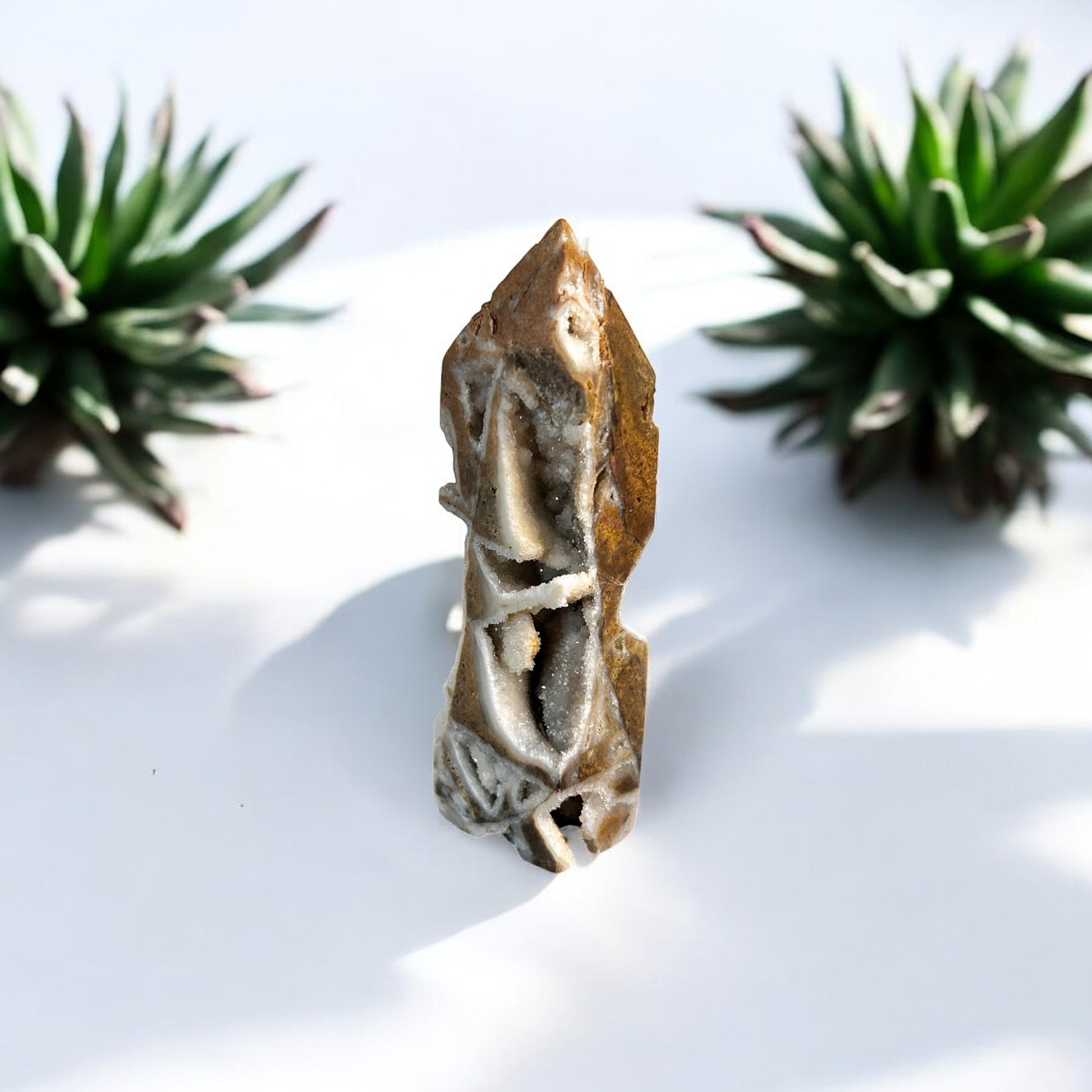 Ob als Mittelpunkt in deinem Ritual, als schützender Begleiter auf dem Schreibtisch oder als funkelndes Schmuckstück deiner Sammlung – dieser Turm verbindet Erdung mit kosmischem Strahlen.