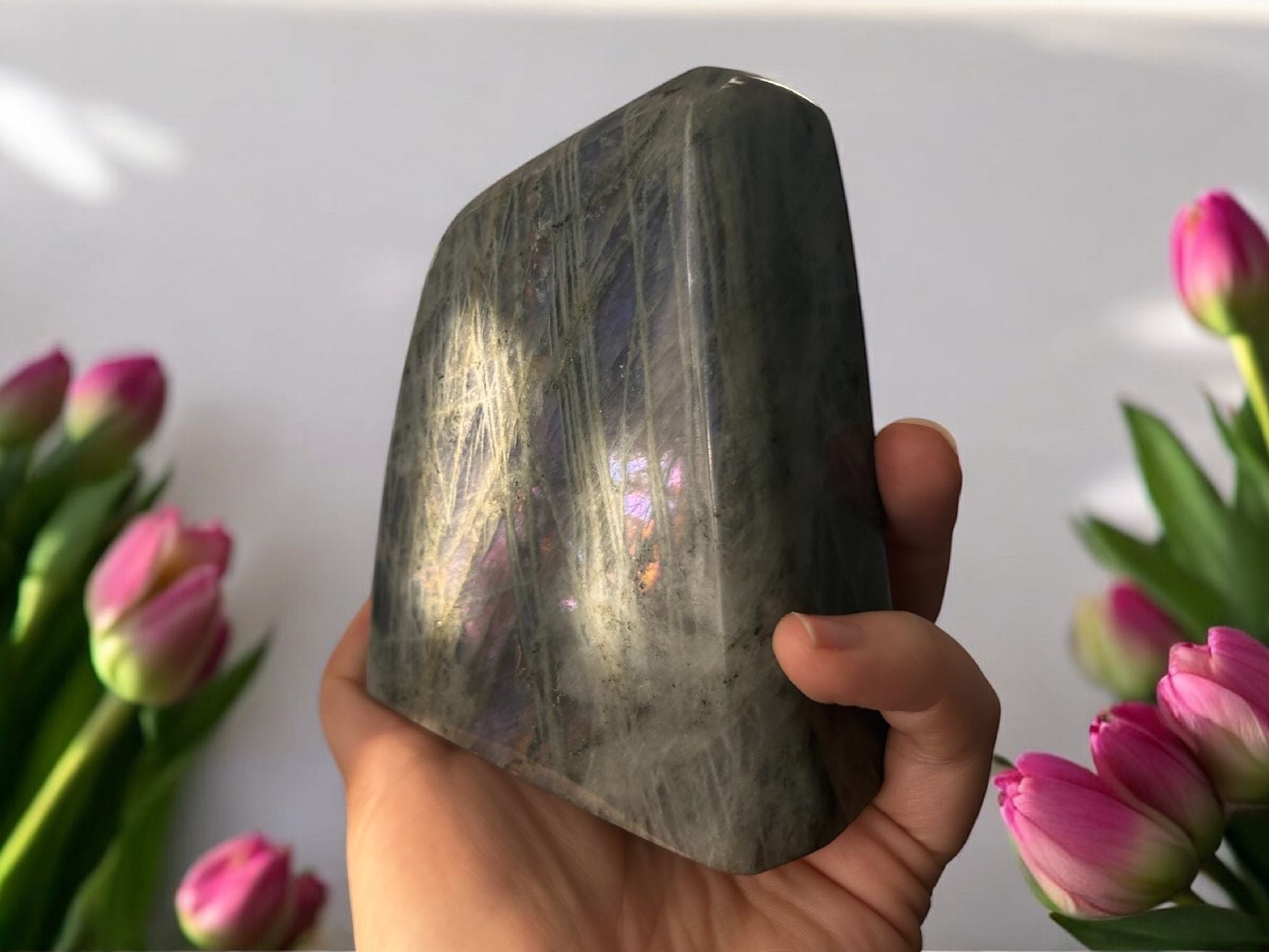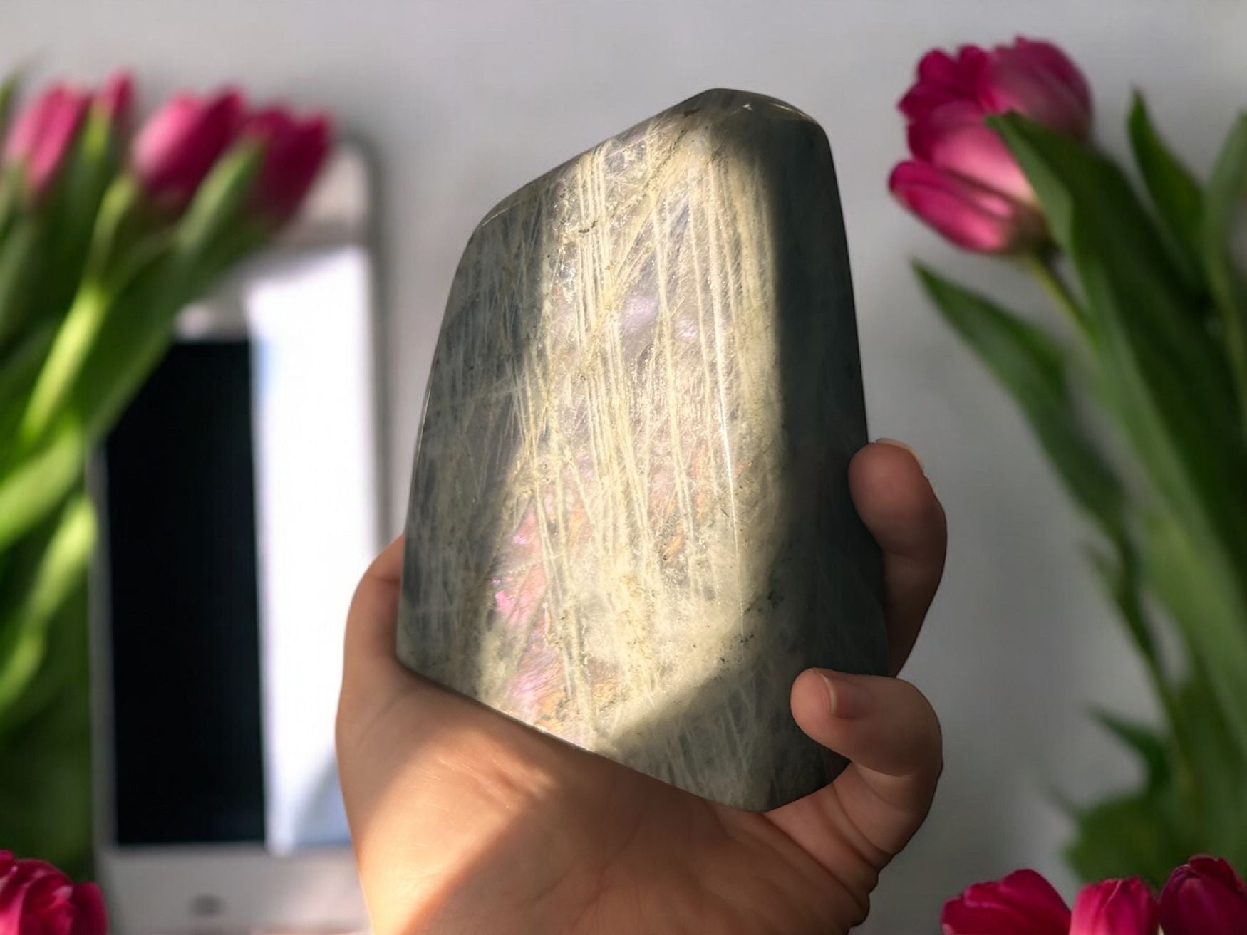 Ein perfektes Sammlerstück, Dekorationsobjekt oder Begleiter für spirituelle Praktiken – dieser Labradorit ist ein echtes Highlight für alle Kristallliebhaber!